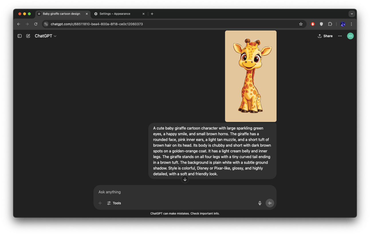 Use the image feature in ChatGPT to create your base character or object. You can enter a custom text prompt and even upload a reference image if needed.
